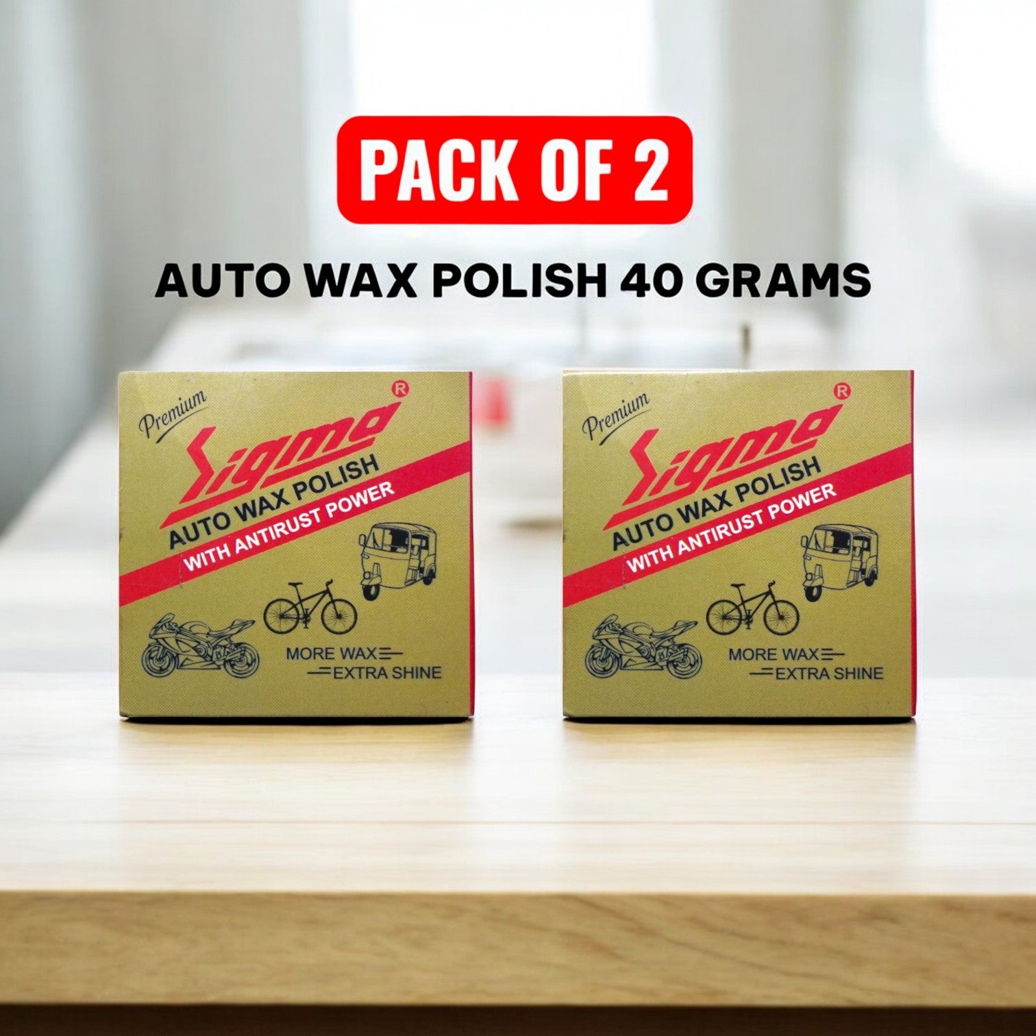 Sigma Cares Auto Wax Polish Pack of 2 (40g Each) – Premium Car & Bike Wax Polish for Deep Shine, Gloss & Long-Lasting Paint Protection | Water Resistant | Carnauba Wax Based