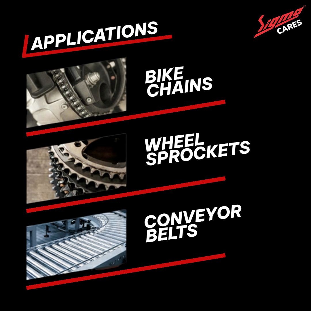 Ensure the chain is clean before applying (recommended: use Sigma Cares Chain Cleaner).